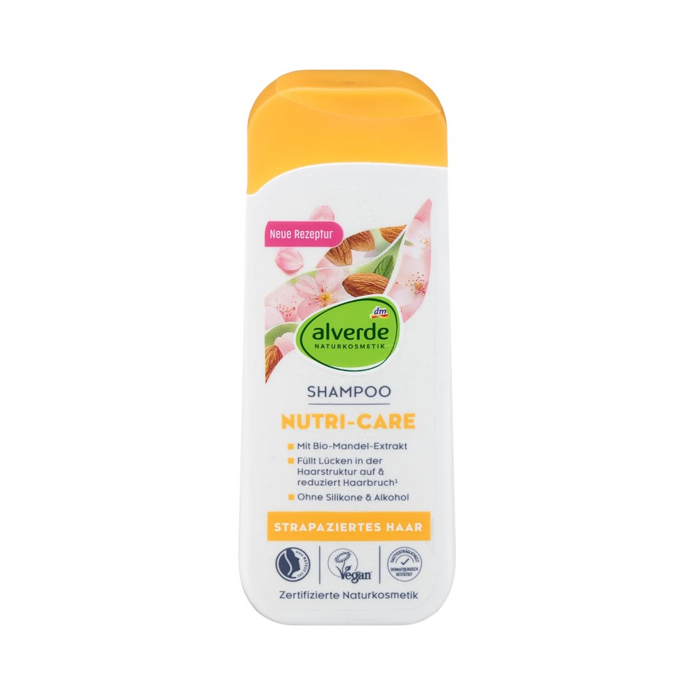Nettoie en douceur et nourrit intensément : le shampooing Nutri-Care d'Alverde a été spécialement conçu pour les cheveux fragilisés et abîmés. Sa formule, riche en extrait d'amande bio, protéines de blé et arginine apporte un soin intensif à votre chevelure. Grâce à son complexe revitalisant, la structure du cheveu est choyé et le démêlage est visiblement facilité.